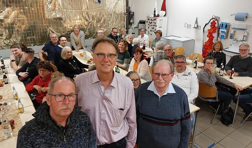 Unterstützt hat ihn stets seine Frau Aloisia, die 2018 verstorben ist und mit der er fast 60 Jahre verheiratet war. Günter Umlauf wohnt gemeinsam mit seiner Tochter Birgit und ihrer Familie in seinem Elternhaus auf der Hohe Straße. Treu geblieben ist er auch seinem Arbeitgeber Haver & Boecker. Von der Ausbildung zum Maschinenschlosser ab 1946 bis zum Rentenbeginn nach fast 50 Jahren Firmenzugehörigkeit war er dort beschäftigt. Auch im Privatleben blieb Günter Umlauf als eingefleischter Oelder hilfsbereit und gesellig. Er ist Mitglied im Schützenverein Hubertus, kegelte jahrzehntelang bis 2004 bei den „Treuen Freunden“ und gründete 1985 zusammen mit Erwin Hellweg eine DRK-Kegelgruppe mit Partner*innen, die bis 2020 bestand. „Wir haben viel gemeinsam erlebt, Ausflüge organisiert und Reisen gemacht. Einige von uns treffen sich immer noch regelmäßig, auch wenn wir nicht mehr aktiv kegeln.“